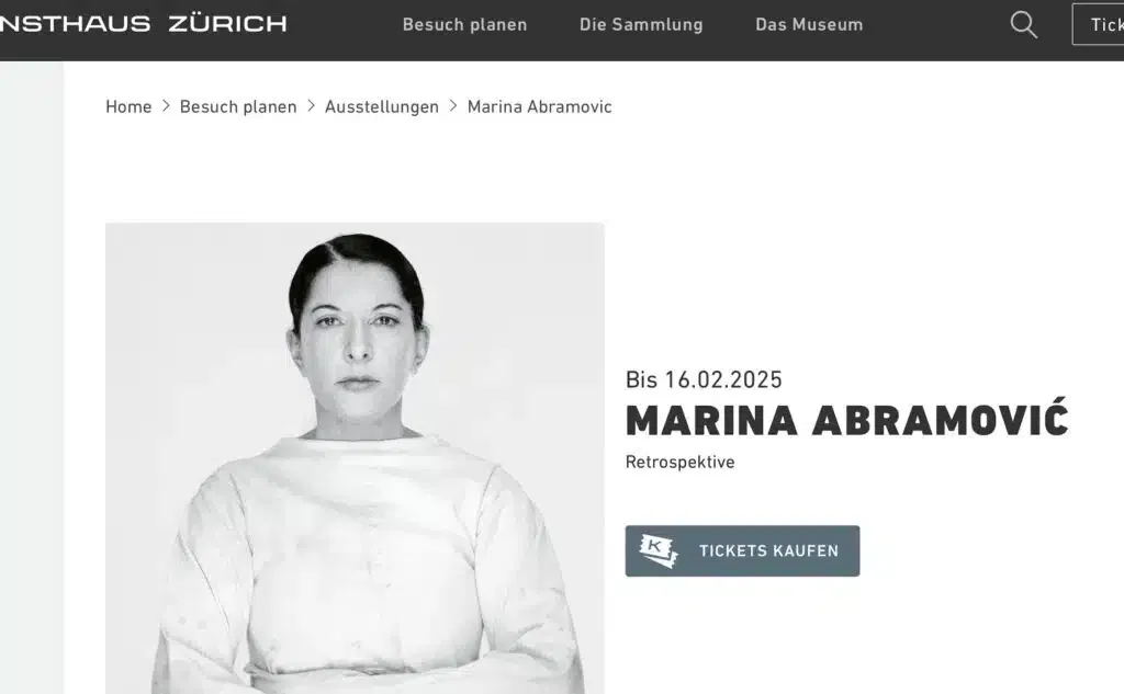 Nach dem Frühstück unterhalte ich mich noch eine Weile mit meinem Mann und schaue danach nach, bis wann genau Marina Abramovic, die Pionierin der Performance-Kunst im Zürcher Kunsthaus noch zu sehen ist.